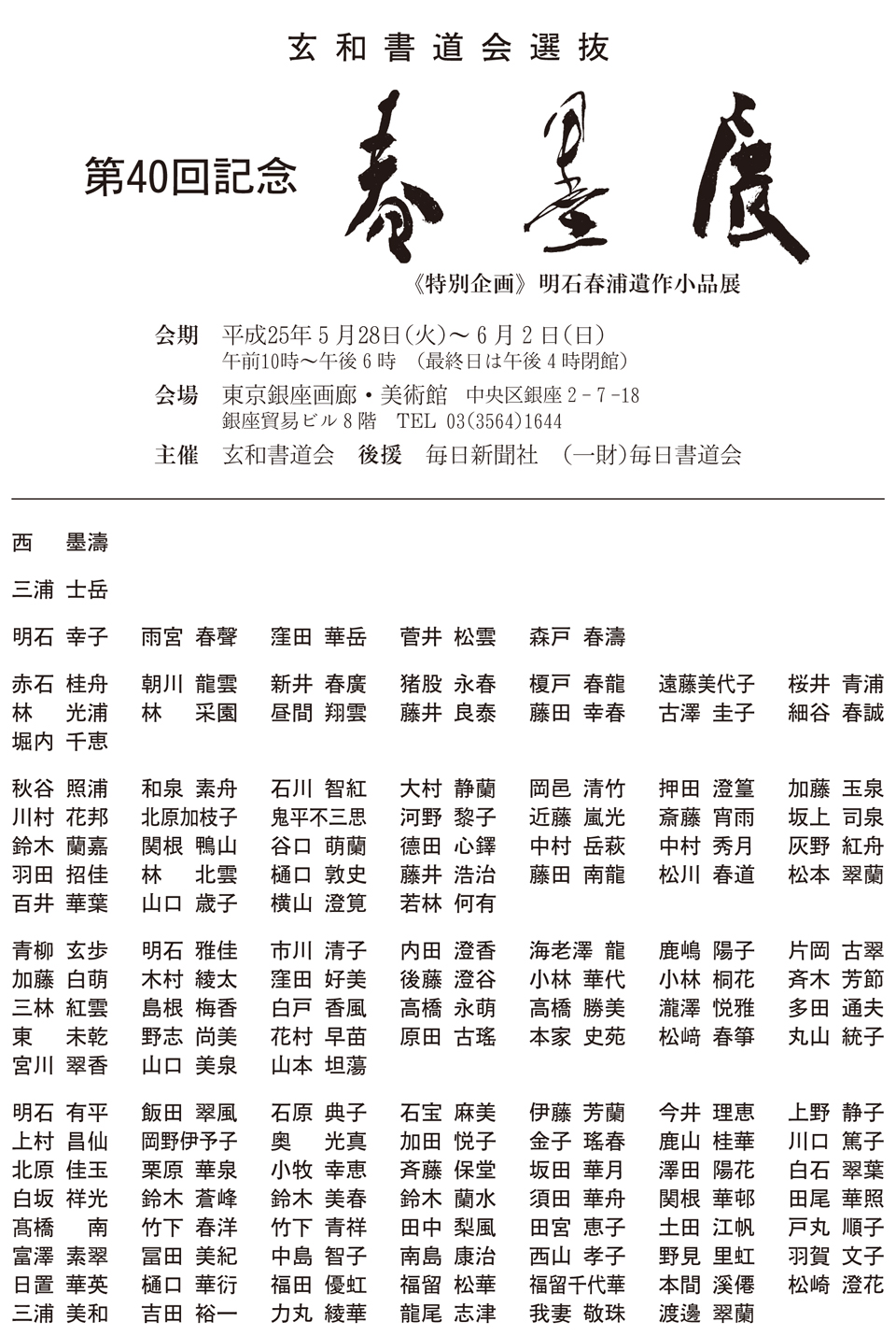 “今月の手本ページ”へ第40回記念 玄和書道会選抜 春墨展のご案内