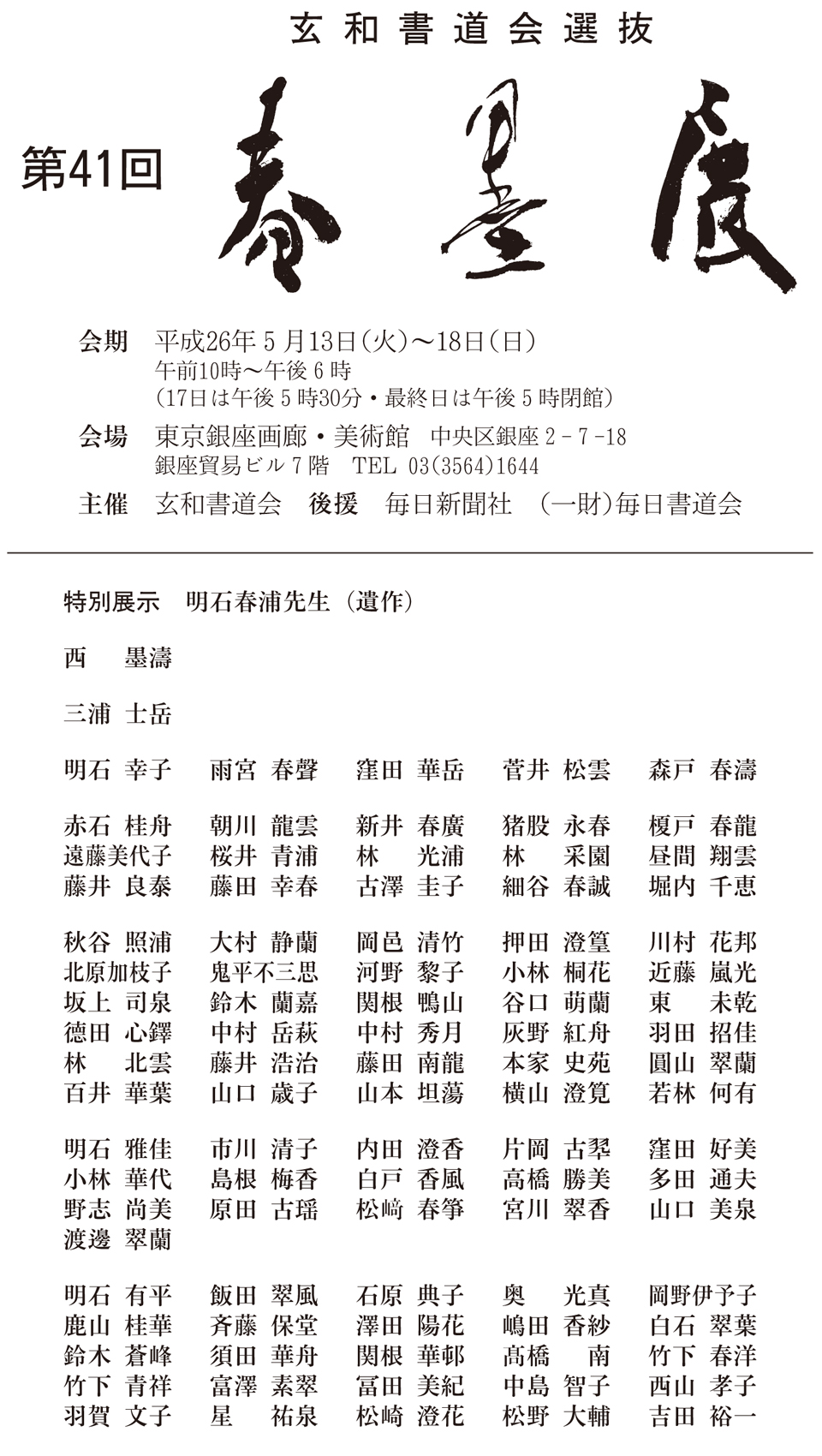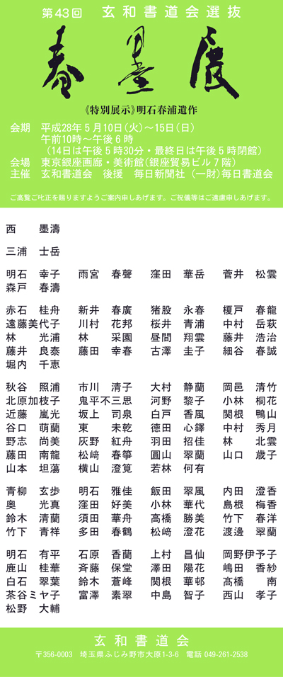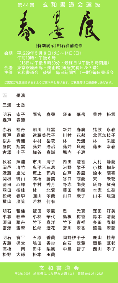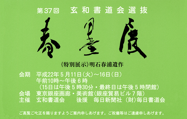 2010年5月13日現在、第37回 玄和書道会選抜 春墨展 が東京銀座画廊・美術館にて開催中です。