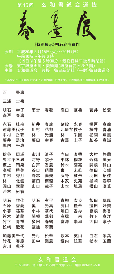 第37回 玄和書道会選抜 春墨展のご案内